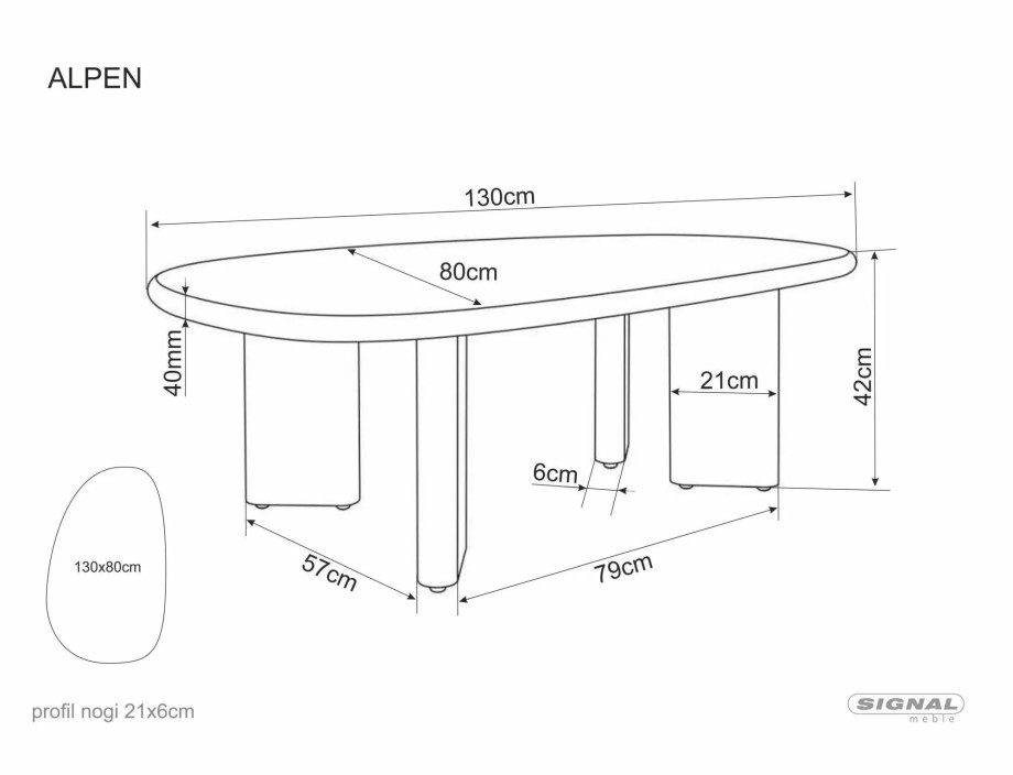 Стол журнальный кофейный Alpen 130×80 см. Экрю / Дуб 6