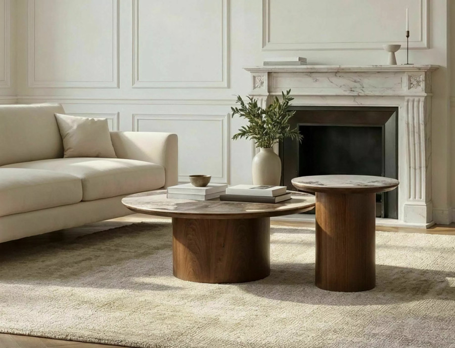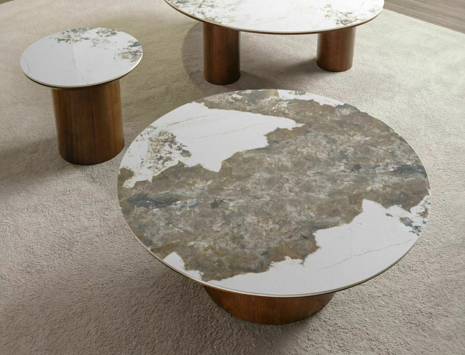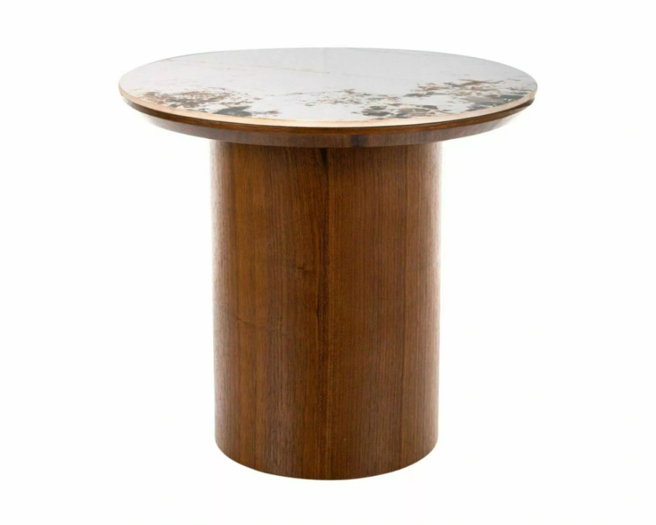 Журнальный столик, столешница: МДФ+керамика Pandoro, каркас: МДФ+натуральный шпон, цвет: глянцевый белый/орех.