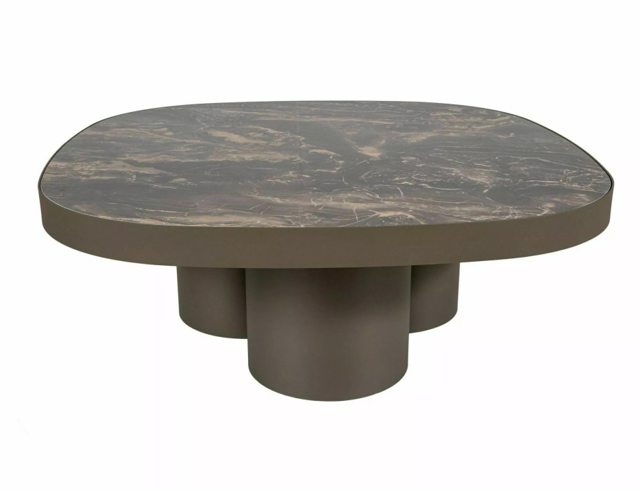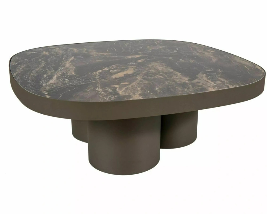 Журнальный столик, столешница: испанская керамика Vulcano, каркас: металл, цвет: глянцевый черный/медный.