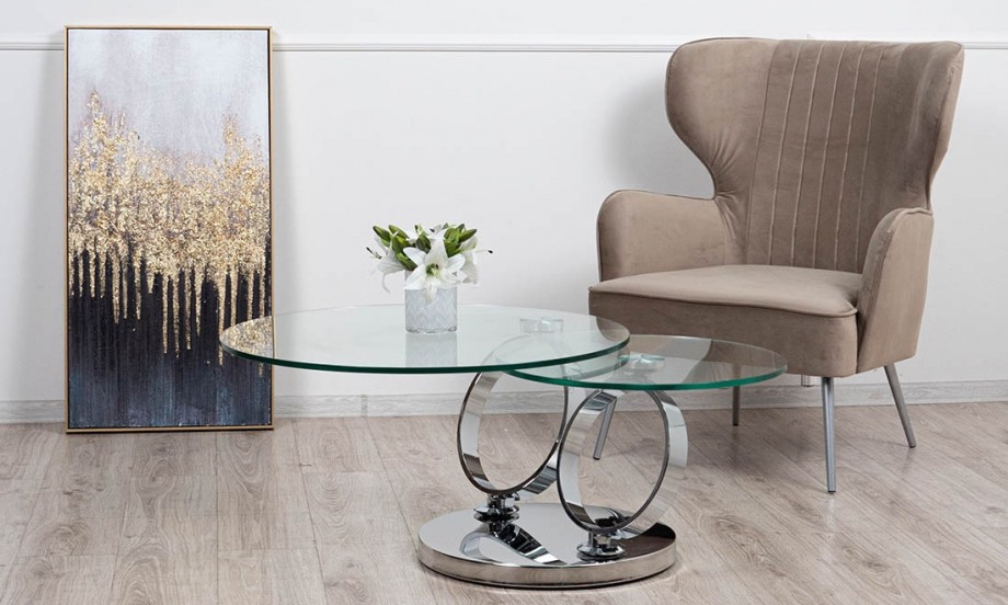 Столик Double Ring оригинальное исполнение из стекла и металла