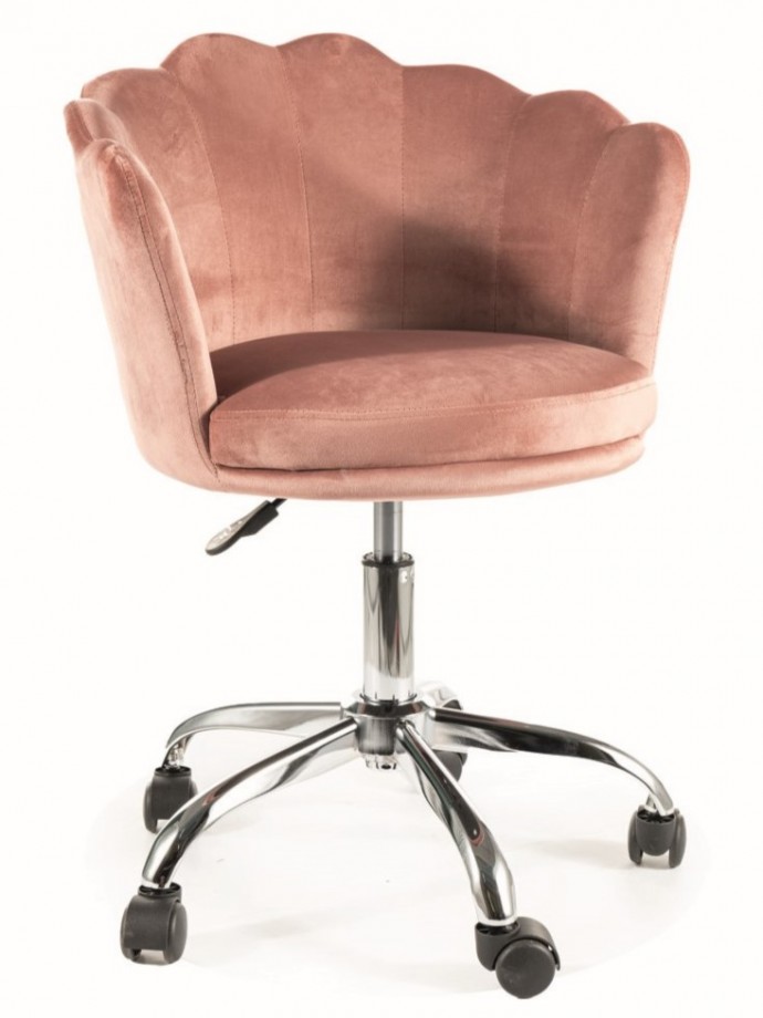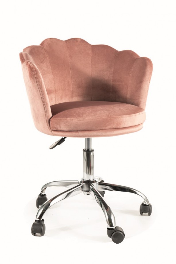 Поворотне крісло ROSE VELVET в антично-рожевому кольорі від Signal Meble створено для вимогливих користувачів. Оригінальне крісло відмінно підійде як стильне доповнення до декору сучасного офісу, студії або вітальні. Широке і м'яке сидіння оббито приємним оксамитом, що підвищує комфорт його використання. Дизайн крісла у вигляді квіткової чашки надає інтер'єру витончений характер. Ідеальний варіант для кімнати дівчинки-підлітка. Використовуваний пневматичний циліндр забезпечує плавне регулювання висоти та свободу обертання.