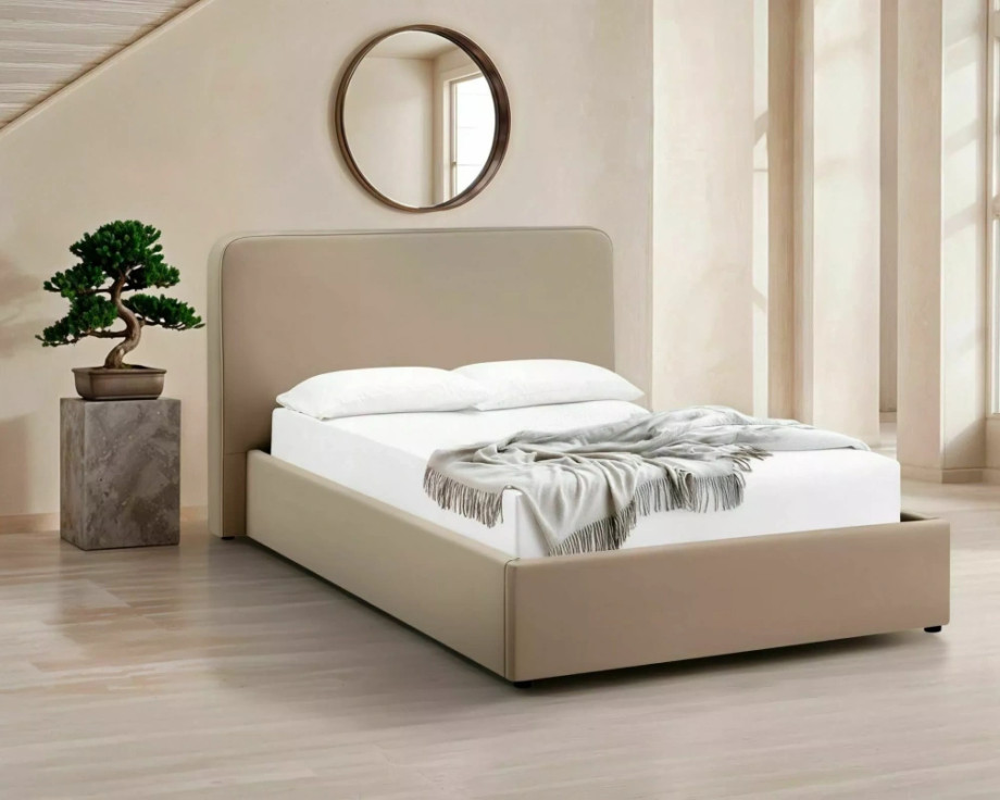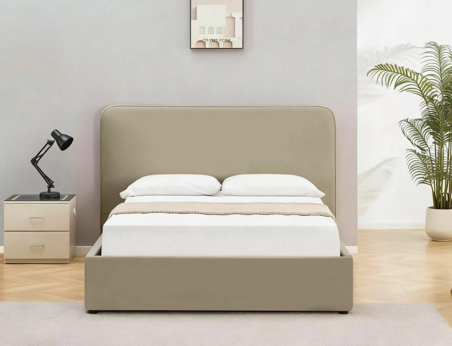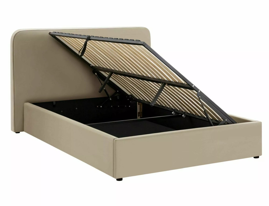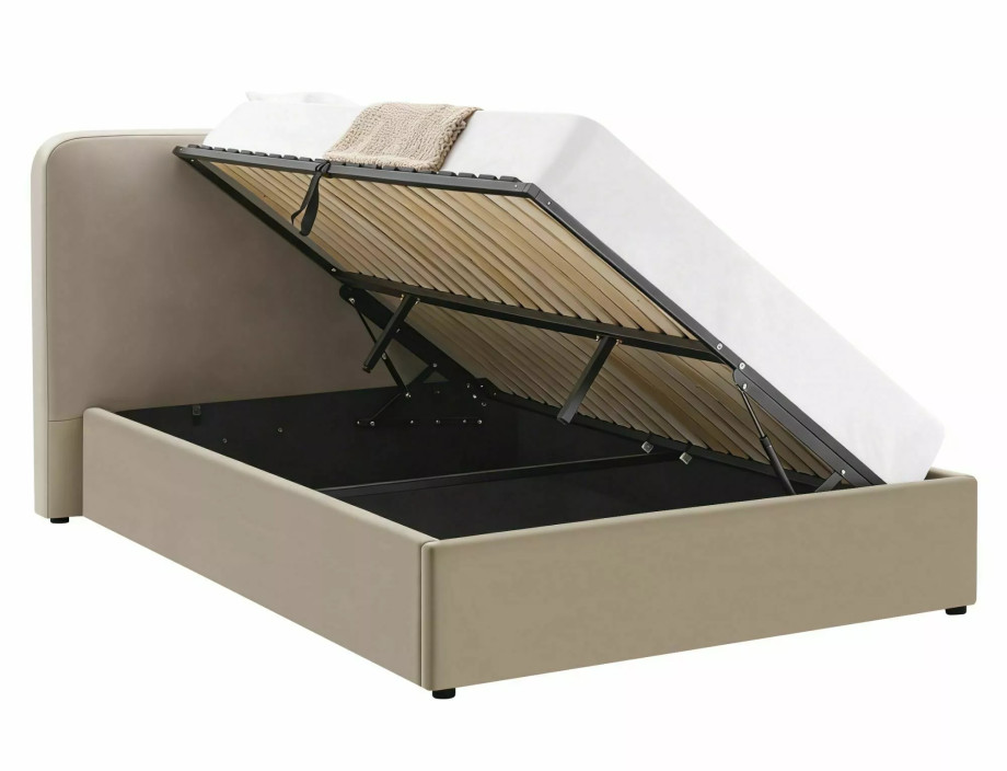 Ліжко з місцем для зберігання, оксамитова тканина Bluvel, колір: 40 темно-бежевий. Дерев'яний рейковий каркас у комплекті. Розмір матраца: 160x200 см (ціна без матраців). Бічний каркас - універсальне складання, боковини, що відкриваються ліворуч/праворуч, газові підйомники. Розміри ліжка: