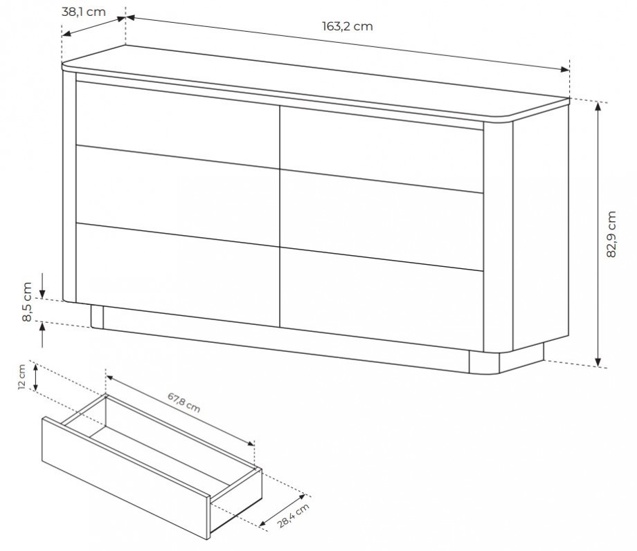 Ідеальні пропорції та місткістьЗавдяки 6 просторим шухлядам ви зможете зберігати всі необхідні речі під рукою, без зайвого безладу. Якщо ви шукаєте комод, що втілює у собі якість та стиль, цей варіант стане вашим надійним вибором для купівлі меблів у нашому магазині в Україні.