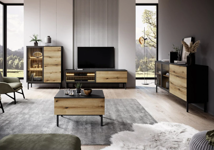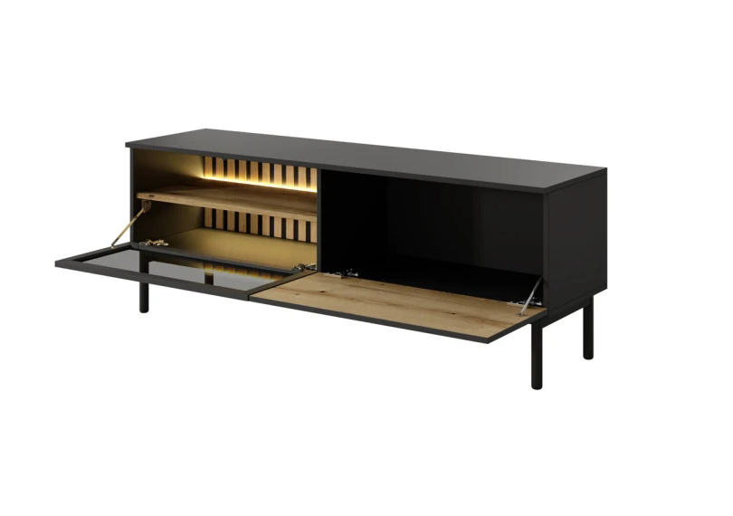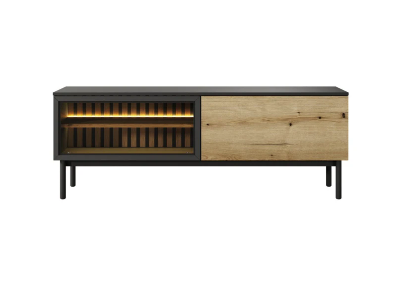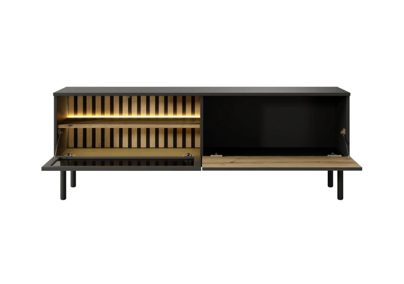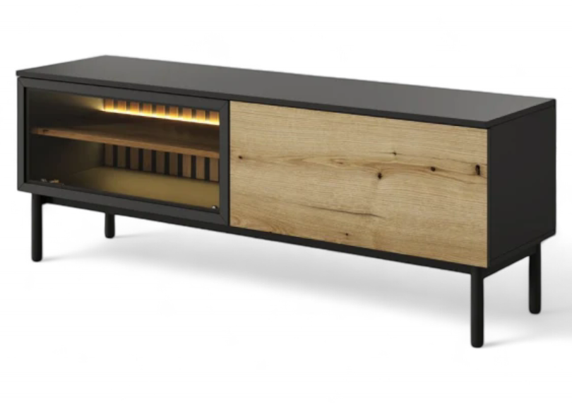 - це означає обрати не лише стильний, але й функціональний елемент інтер'єру. Ця модель з двома дверцятами, виготовлена в поєднанні чорного кольору та нейтрального дуба евок, стане ідеальним доповненням до будь-якого класичного або мінімалістичного дизайну вашої кімнати. Основна перевага цієї тумби - це естетичний вигляд і практичність, які дозволяють зберігати порядок і забезпечують комфорт під час перегляду улюблених програм та фільмів.Обираючи цю