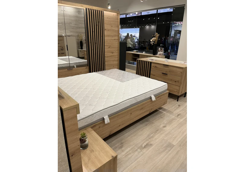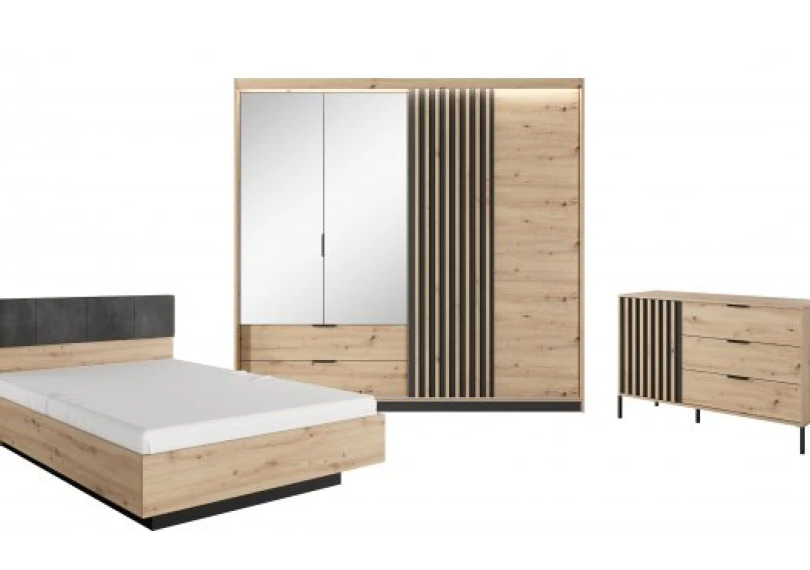 Ваша спальня заслуговує на кращий інтер'єр, і саме тому ми представляємо вам комплект "Спальня Таллі" у кольорі Дуб артизан/антрацит. Ця стильна система меблів від Perfect Home не тільки забезпечує максимальний комфорт, але і втілює сучасний скандинавський дизайн, який стане справжньою окрасою будь-якого приміщення. Основна перевага даного комплекту – це грамотно продумане планування, яке дозволяє ефективно використовувати простір вашої спальні.