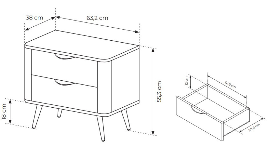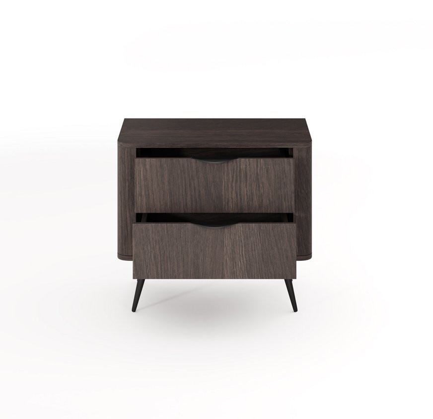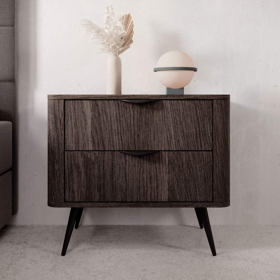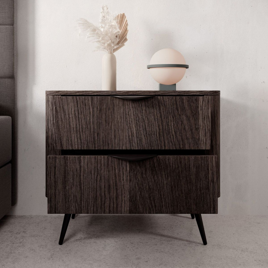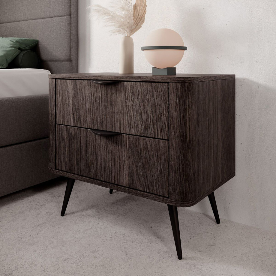 Тумба прикроватна Veris 2S 63 у декорі дуб Дунин з чорними металевими елементами – стильний та функціональний елемент для спальні. Дві висувні шухляди дозволяють тримати під рукою все необхідне в ліжковій зоні.