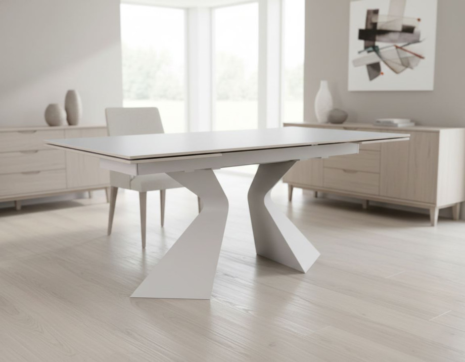 Стіл обідній розкладний LAURA CERAMIC 160(240)*90 білий мат/білий