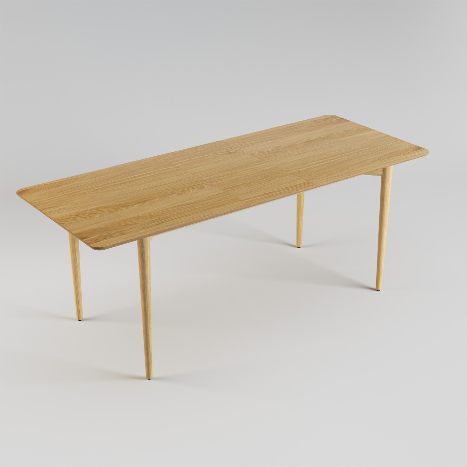 Стіл — це вдале поєднання мінімалізму, функціональності та природної краси дерева. Його витончений каркас із масиву дуба додає легкості, а стільниця з МДФ, шпонированого дубом, підкреслює естетику натурального матеріалу.