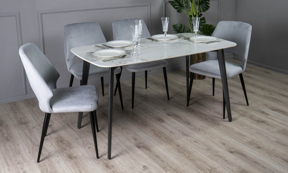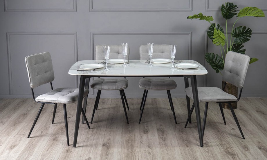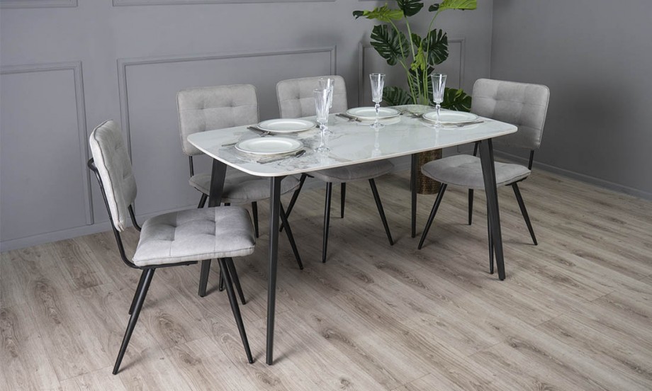 Обідній стіл "Норман" 1395x795x760 у білому виконанні - це мистецтво втілене в меблях. Поєднання легкості білої керамічної стільниці та суворості чорного металевого каркаса створюють атмосферу вишуканості та сучасності у вашій їдальні або кухні.