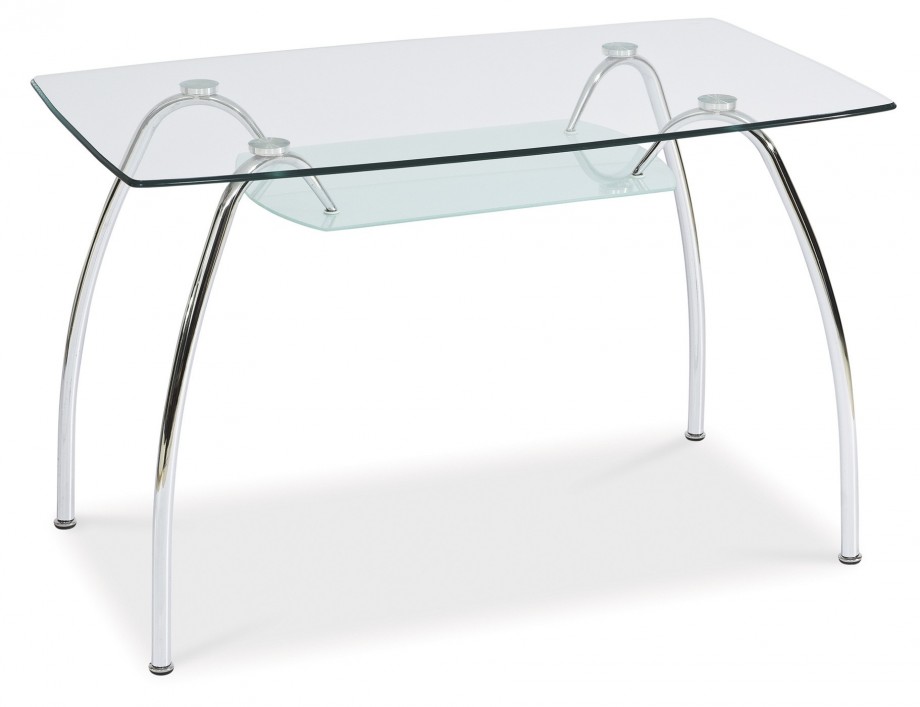 Стіл Arachne I від Signal меблі - це пропозиція для людей, які цінують простий і естетичний сучасний стиль. Стільниця зроблена зі скла прямокутної форми із закругленими кутами. Основа - міцний металевий каркас. Проста і міцна конструкція прослужить довгі роки, а класичний вигляд не вийде з моди, незважаючи на час.