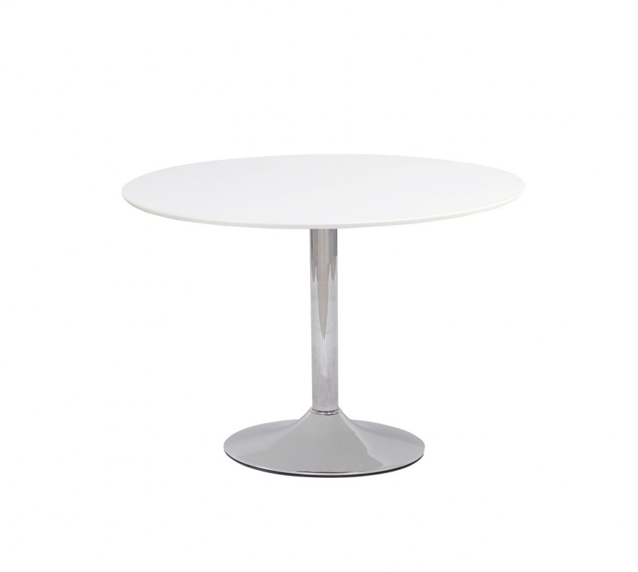 Стіл Flavio від Signal меблі - це сучасний предмет меблів, який впишеться в будь-яку кімнату. Він стане чудовою прикрасою і доповненням декору як в маленьких, так і у великих квартирах. Стіл стане цікавим гарнітуром з класичними стільцями Lino. Кругла стільниця виготовлена ??з модною білої лакованої плити МДФ, яка стійка до пошкоджень і дуже проста в догляді. Декоративна ніжка зроблена з хромованого металу, вона міцна і стійка, завдяки такому поєднанню матеріалів стіл виходить надзвичайно елегантним і в той же час простим і зі смаком.