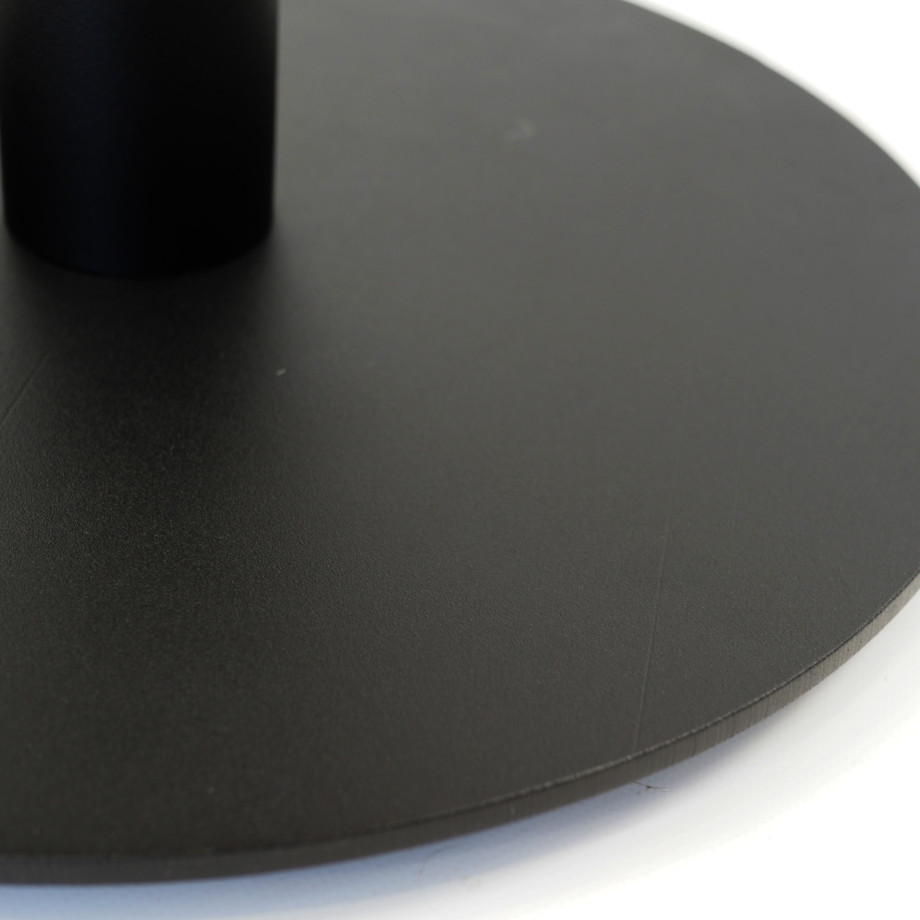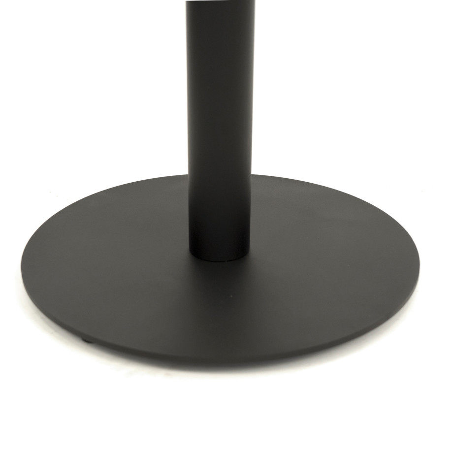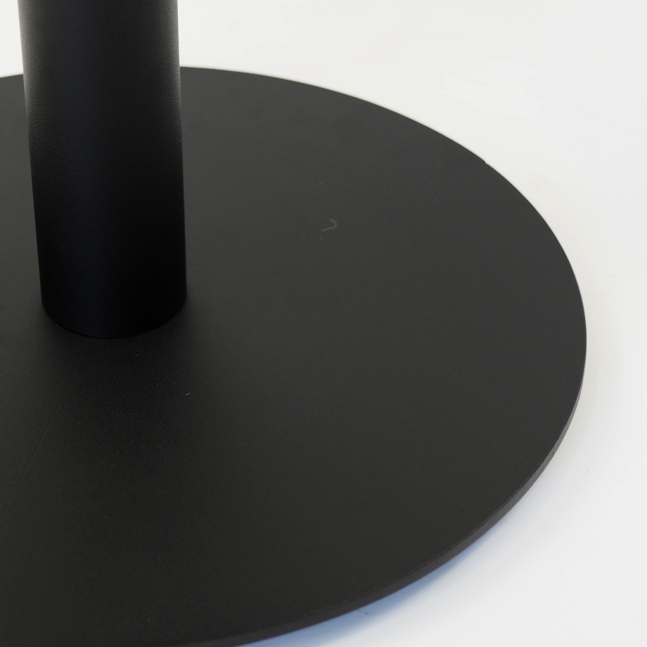 Опора столу складається з нижньої основи діаметром 400 мм товщиною 6 мм з регульованими ніжками, труби діаметром 60 мм з товщиною стінки 1,5 мм, і кріпильної пластини 200х200х4 мм. Покривається порошковою фарбою. Це робить конструкцію стійкою до негативного впливу вологи та механічних пошкоджень.