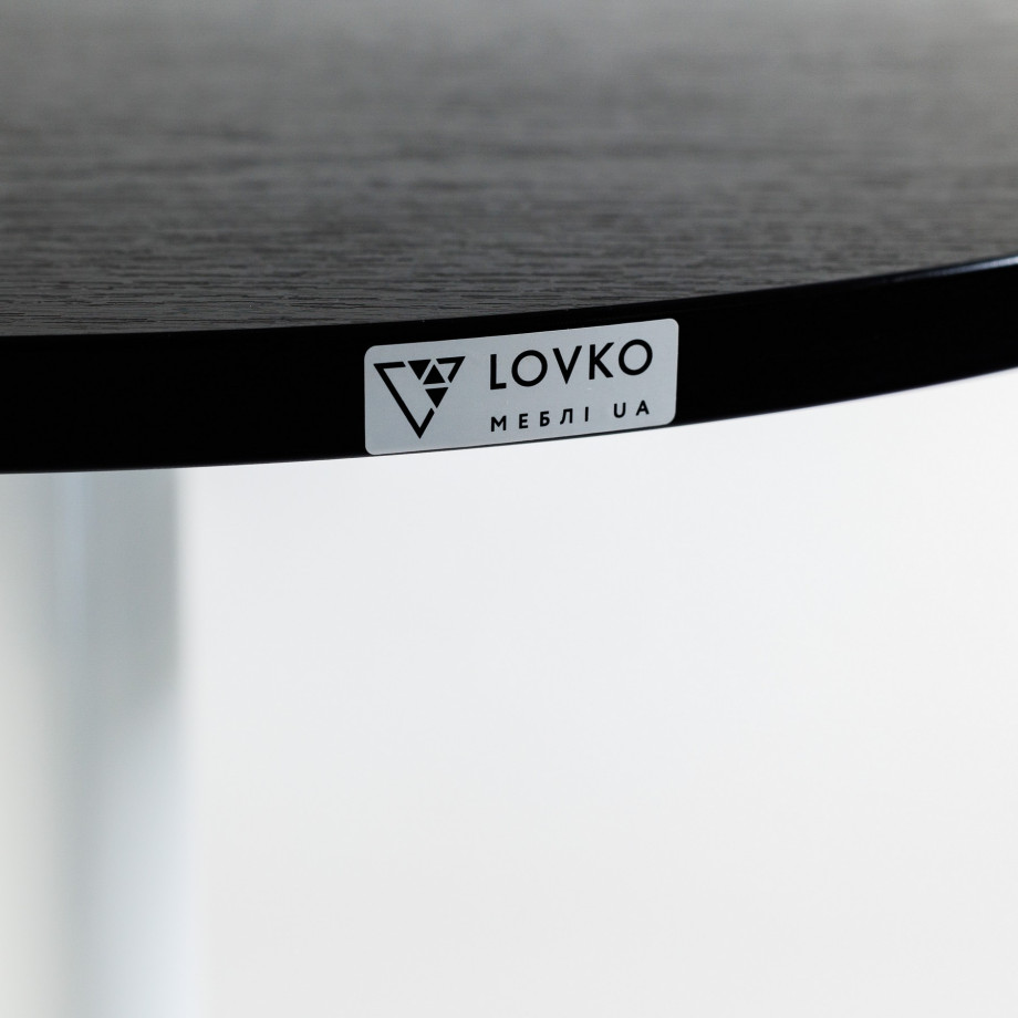 У виробництві застосовуються виключно екологічні та натуральні матеріали. Стіл виконаний з круглою стільницею з ламінованого ДСП. Вона має легкий вигляд і не перевантажує простір, а завдяки використанню спеціальної технології виходить ще й досить міцною. Опора з металу має порошкове фарбування, яке робить її стійкою до різних негативних впливів.
