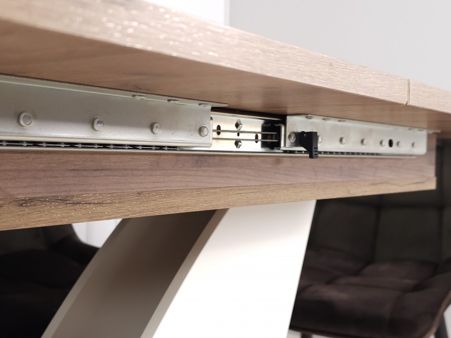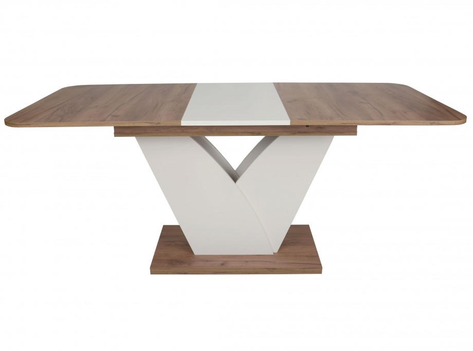 Матеріал столу - ламінований ДСП забезпечує стійкість до зношення та царапин, що дозволяє використовувати стіл протягом тривалого часу. В розкладному вигляді, стіл може розтягнутися до розмірів 140(180)х80, що дозволяє легко перетворити його в стіл обідньої зони для великих компаній.