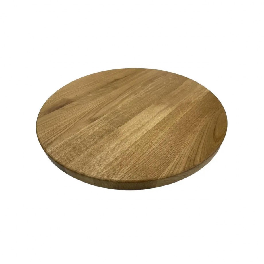 Круглі стільниці, виготовлені з суцільноламельного щита натурального дуба. Наша продукція поєднує міцність, естетику і функціональність, створюючи ідеальне рішення для вашого інтер'єру.