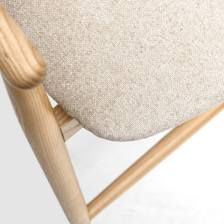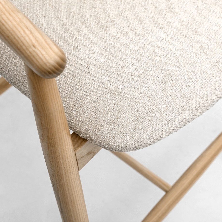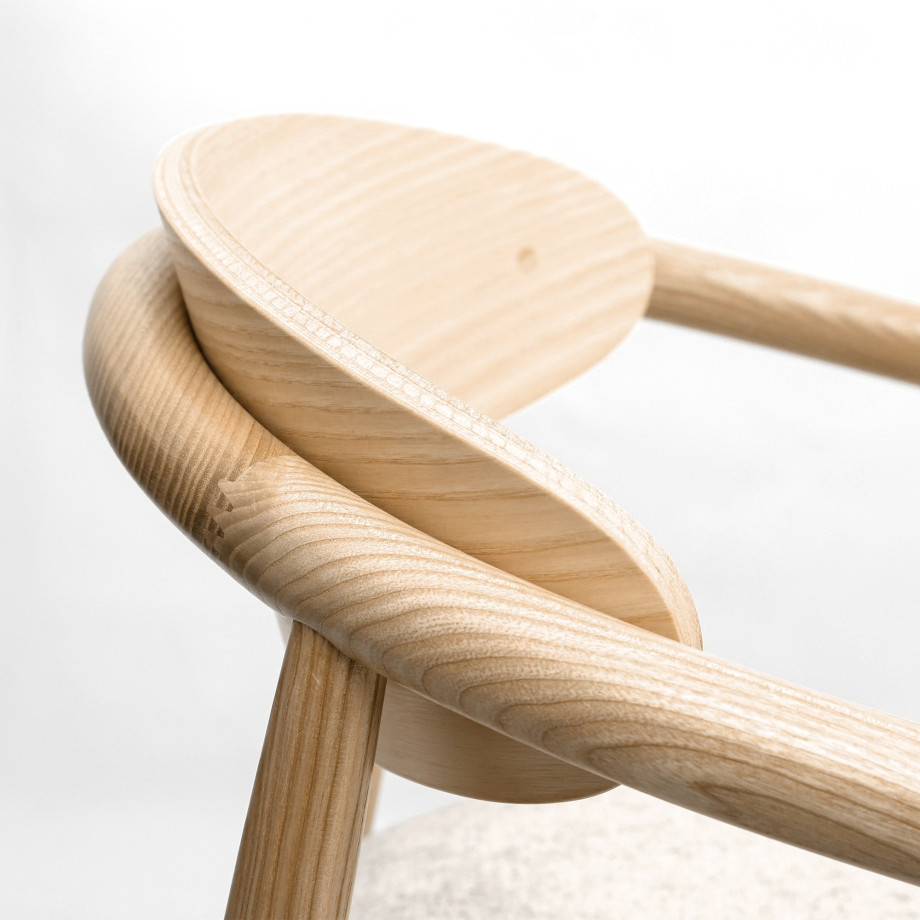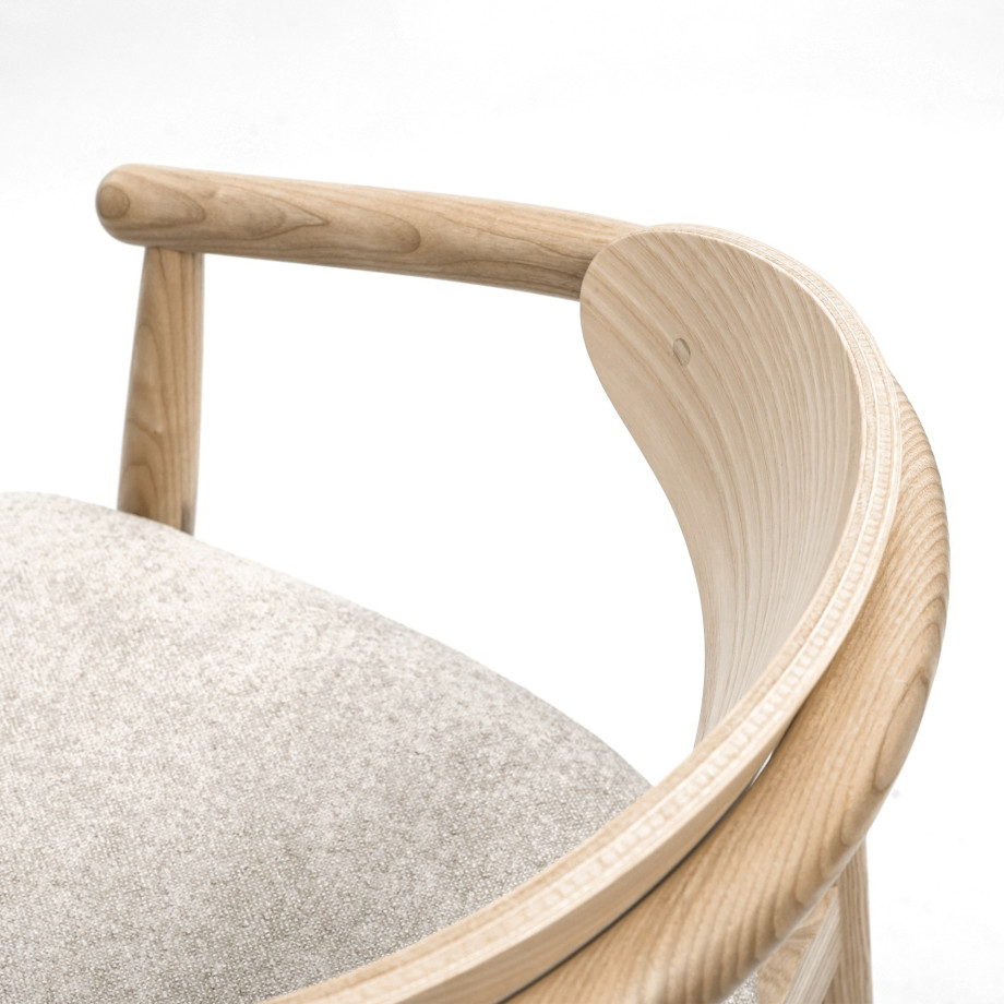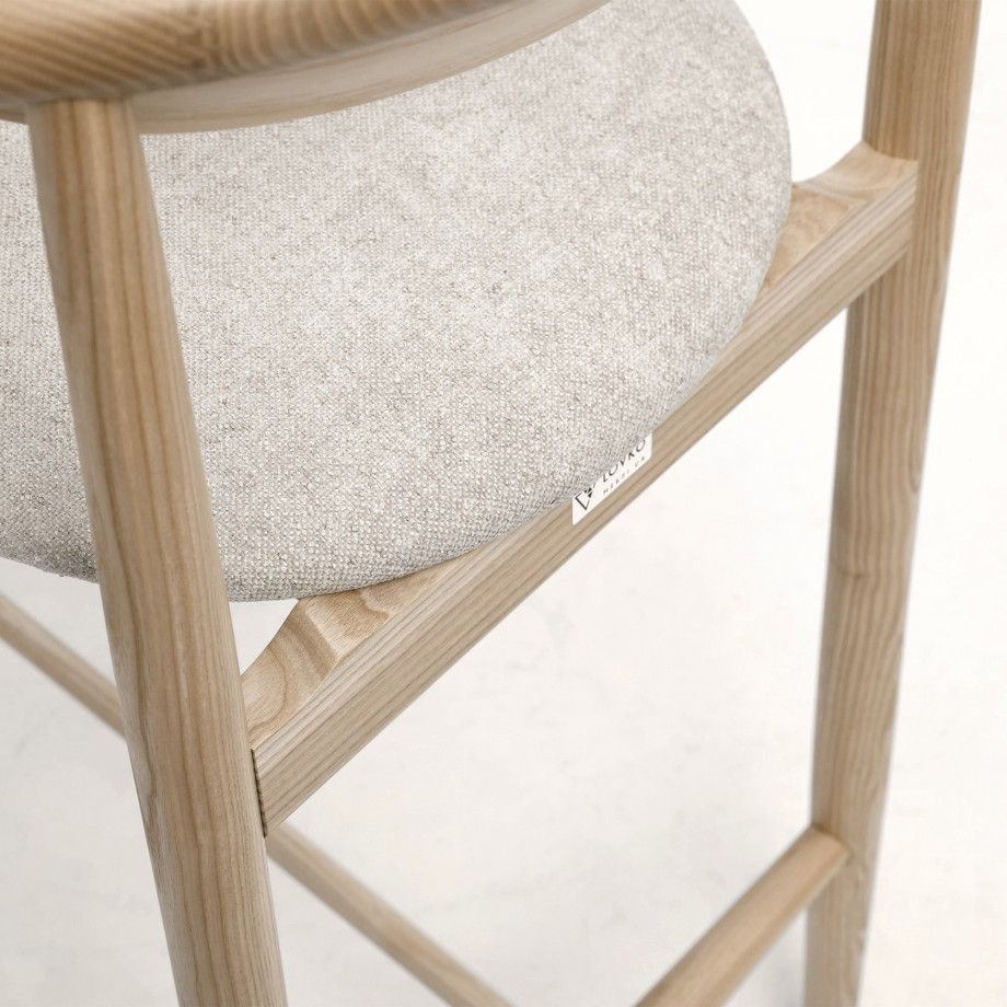 Напівбарний стілець Mamont semis-soft з підлокітниками і шпонованою спинкою – це елегантне та комфортне рішення для вашого інтер'єру, що поєднує в собі стиль, натуральні матеріали та функціональність. Виготовлений з високоякісного натурального ясена, цей стілець є чудовим прикладом майстерності та якості в меблевому дизайні.