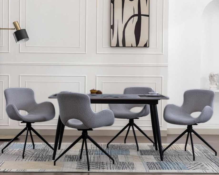 Стілець з чорним каркасом і сірим сидінням з тканини букле - це поєднання стилю, зручності та функціональності. Ідеальний вибір для обідньої зони, ресторану, кафе або офісу. Металеві ніжки з чорним порошковим покриттям забезпечують стабільність і довговічність, а сіре сидіння з м'якої тканини букле додає витонченості та комфорту вашому інтер'єру.