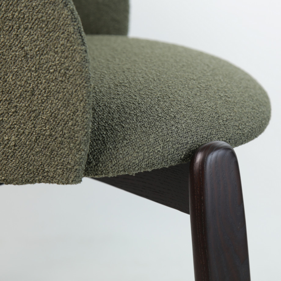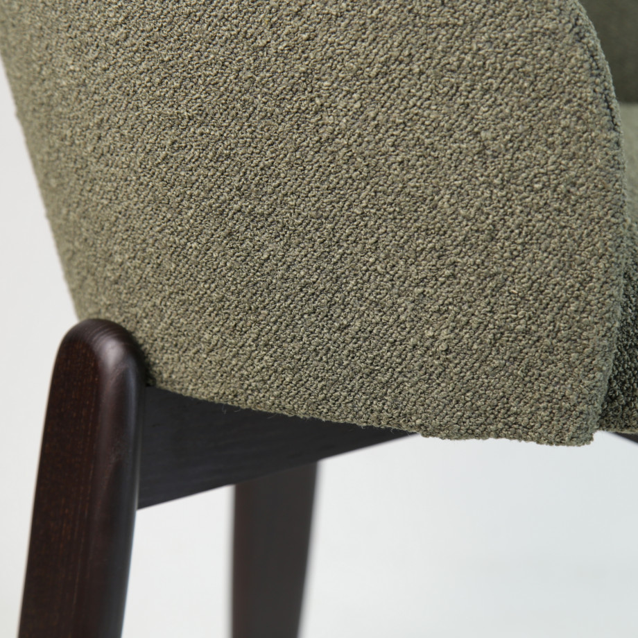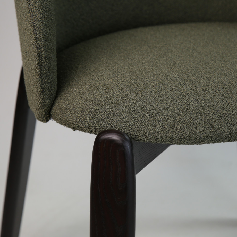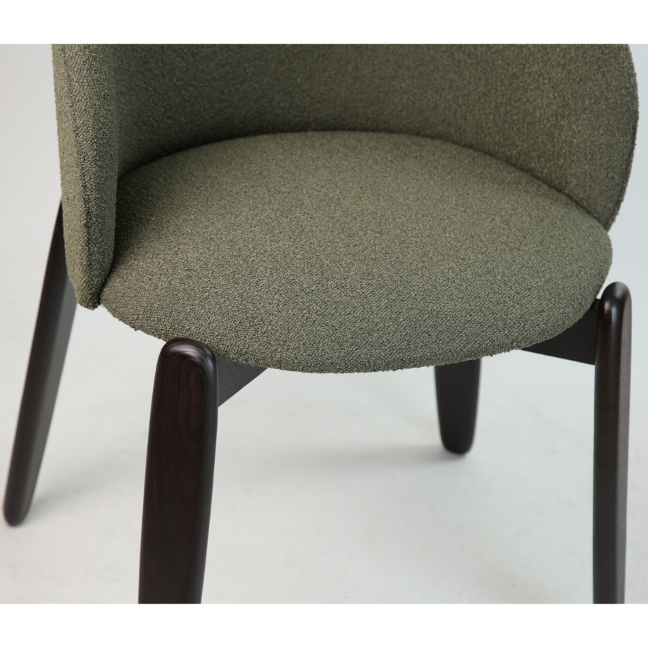 Стілець — це поєднання вишуканої форми, комфорту та натуральних матеріалів. Його м’яке сидіння та округла спинка створюють затишне обіймання, забезпечуючи зручну посадку як для щоденного використання, так і для тривалих зустрічей за столом.