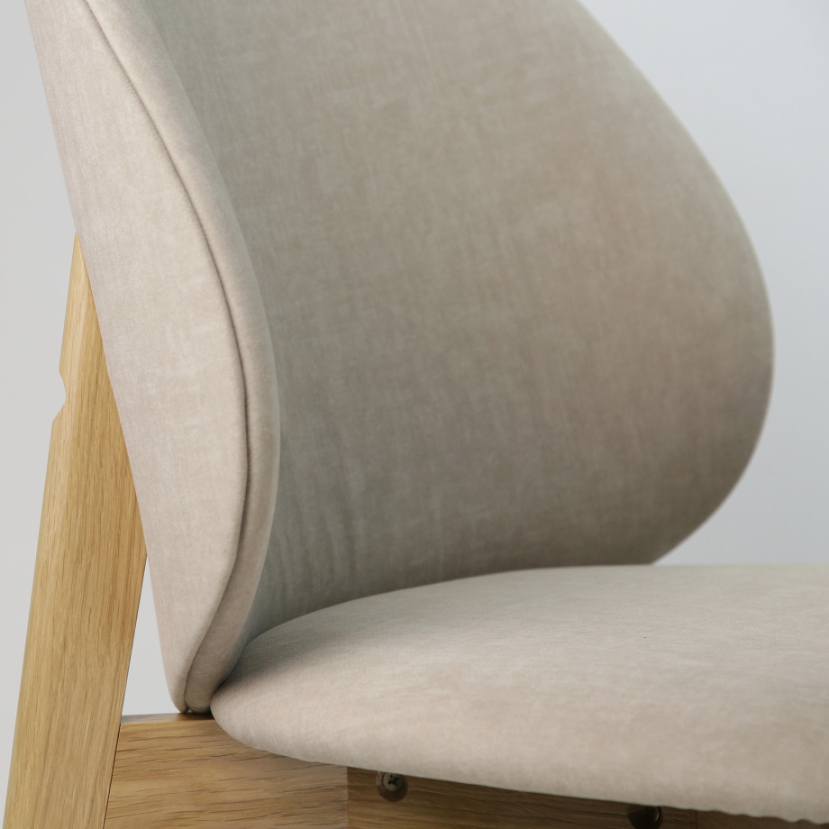 Стілець — це поєднання м’яких форм і природної фактури дуба. Завдяки ергономічній спинці та комфортному сидінню, він чудово підходить як для дому, так і для закладів HoReCa. Дерев’яна основа з масиву дуба забезпечує стабільність і довговічність.