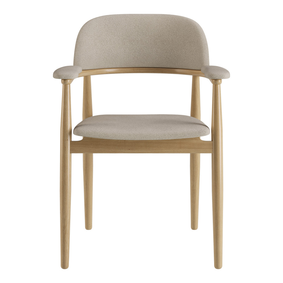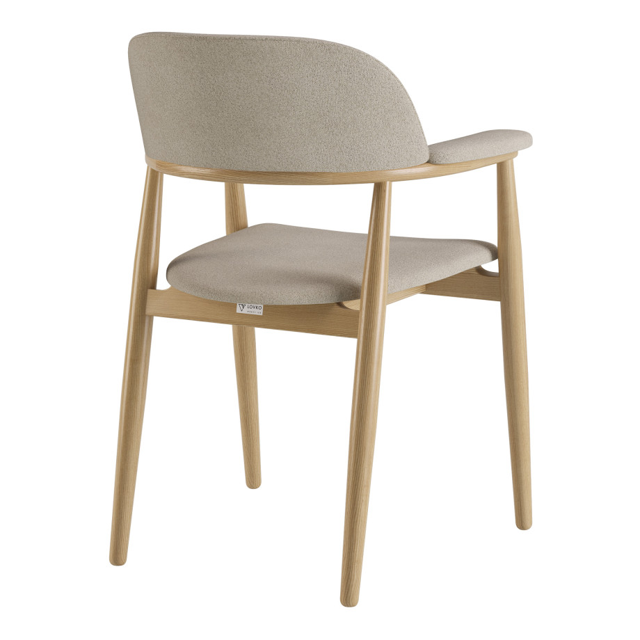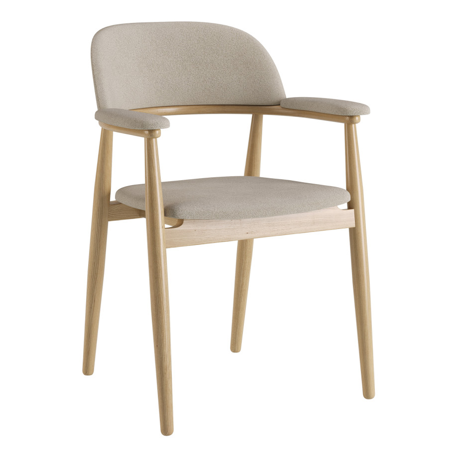 Стілець Terra — це поєднання природної фактурності та лаконічного дизайну. Завдяки зручним підлокітникам і м’якому сидінню він забезпечує максимальний комфорт навіть під час тривалого сидіння. Каркас виконаний із масиву ясеня, що надає міцності й стабільності, а текстурна тканина додає теплоти та характеру виробу.