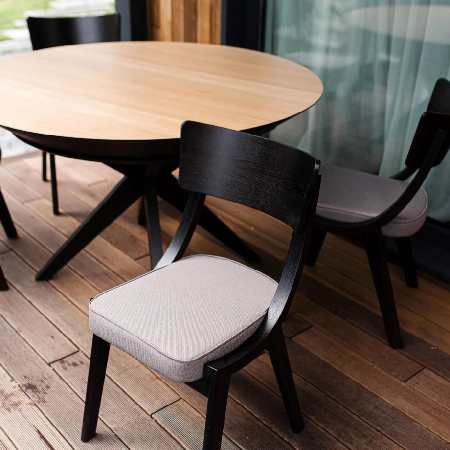Стілець Ніл виготовлений з натурального дерева та доповнений м'яким, зручним сидінням бежевого кольору. Сучасний матеріал оббивки стільця надає йому особливої ??привабливості та практичності. Ніжки міцні та добре фіксують виріб на будь-якій поверхні. Стілець добре витримує великі навантаження, не деформується і не втрачає первозданний колір. Такий предмет меблів універсальний у застосуванні та здатний створити затишну атмосферу у приміщенні.